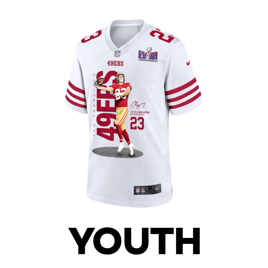 This is the one. The Christian McCaffrey #23 49ers Game Jersey you’ve been looking for. Designed with a youth-sized fit that lets young fans rep their favorite player in style, this jersey is made for game day, watch parties, tailgates, and every day in between.