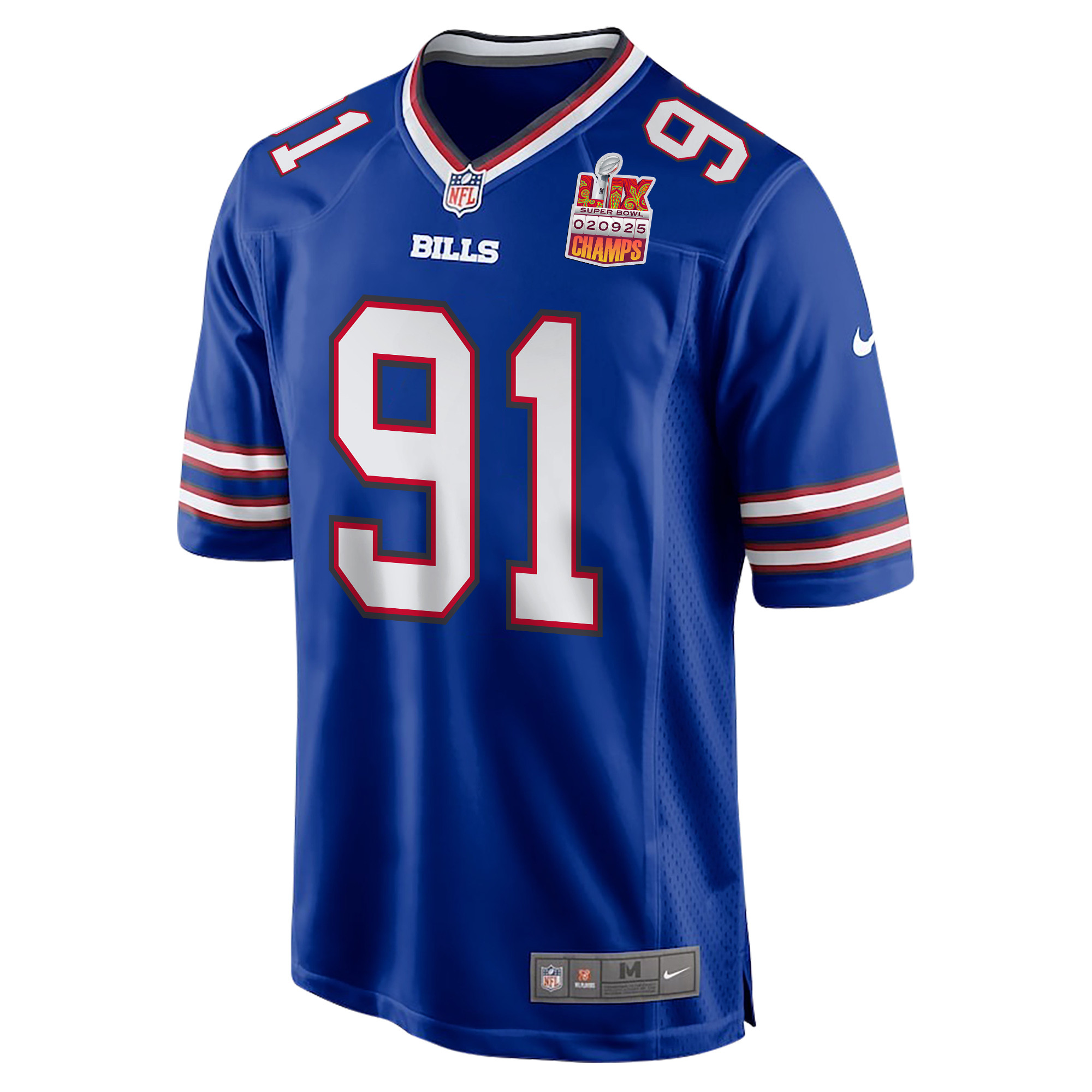 Ed Oliver #91 Buffalo Bills Super Bowl LIX Champions Patch Game Jersey – Men’s | Royal