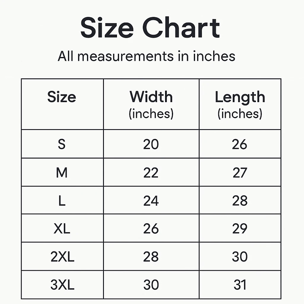 | Size | Width (inches) | Length (inches) |