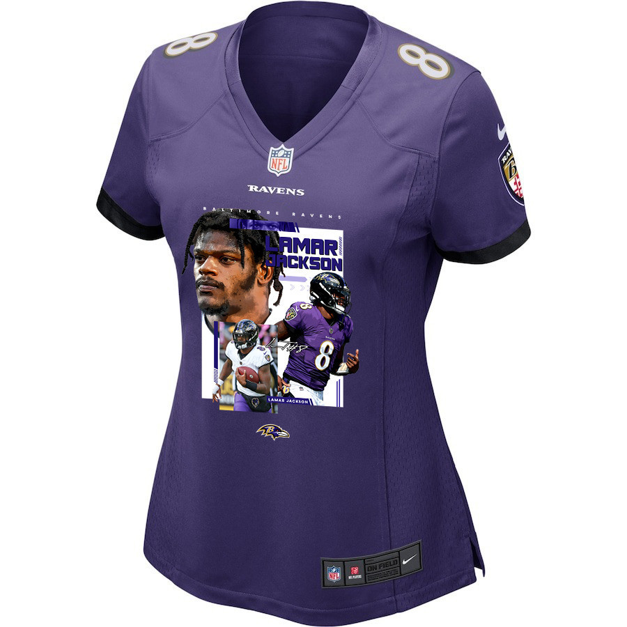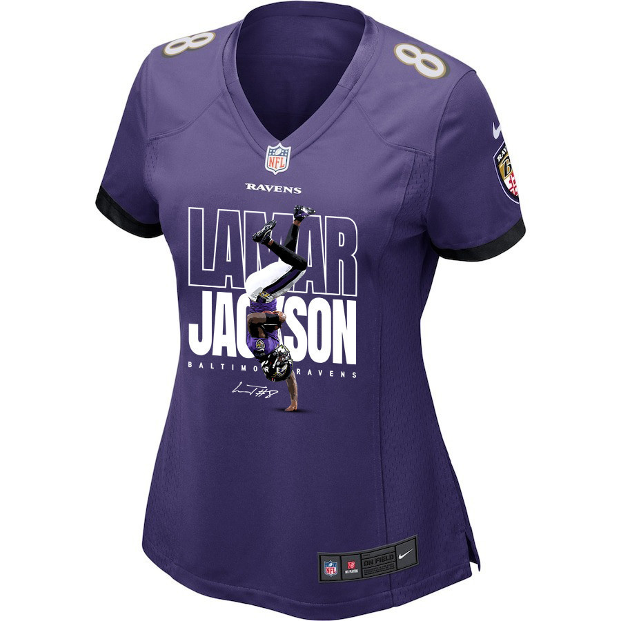 This is the one. The Lamar Jackson #8 Ravens Game Jersey you’ve been looking for. Designed with a flattering women’s cut that’s both stylish and comfortable, this jersey is made for game day, watch parties, tailgates, and every day in between.