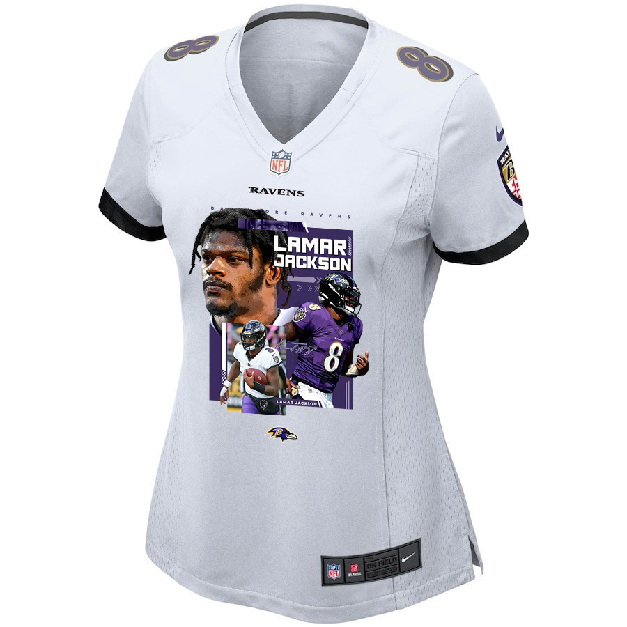 Lamar Jackson #8 Baltimore Ravens Game Jersey – Women’s | White