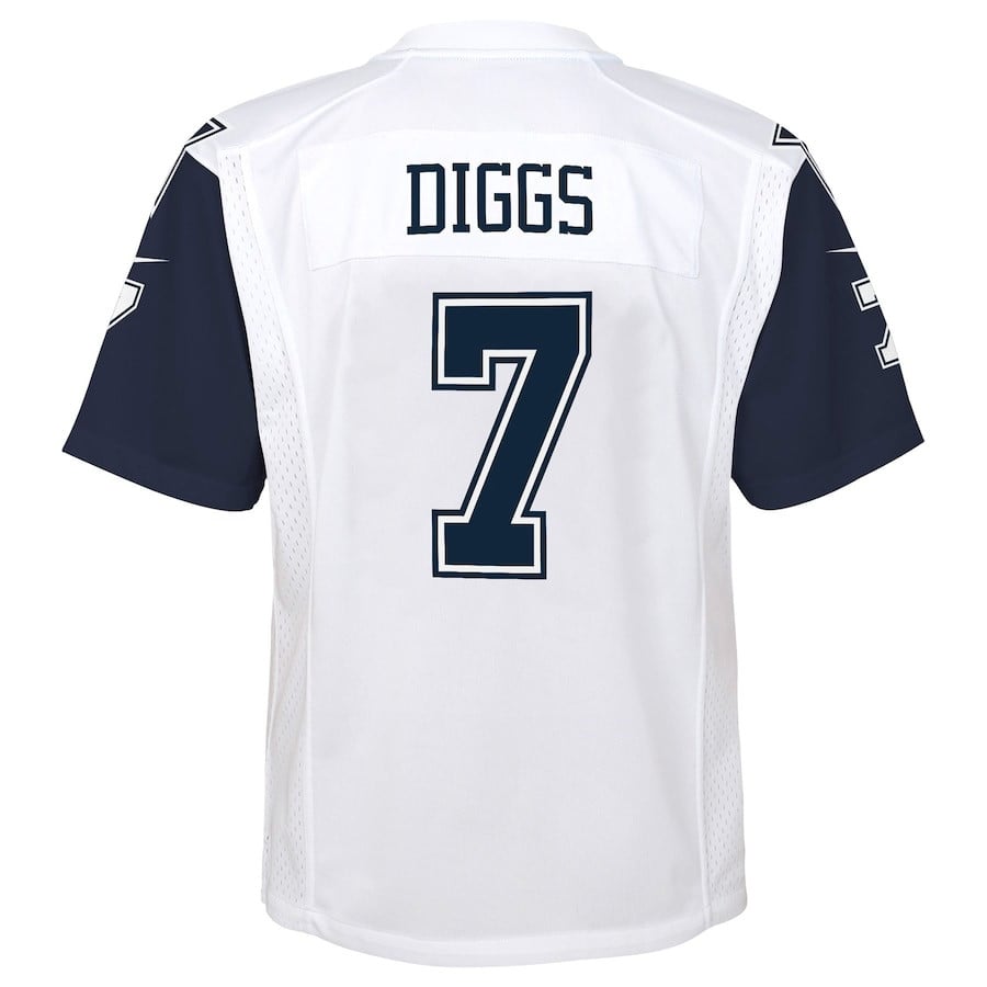 Get the Trevon Diggs #7 Dallas Cowboys Alternate Game Jersey for Youth in White. Breathable, true-to-size, built for game day and beyond. Free returns if it’s not perfect.