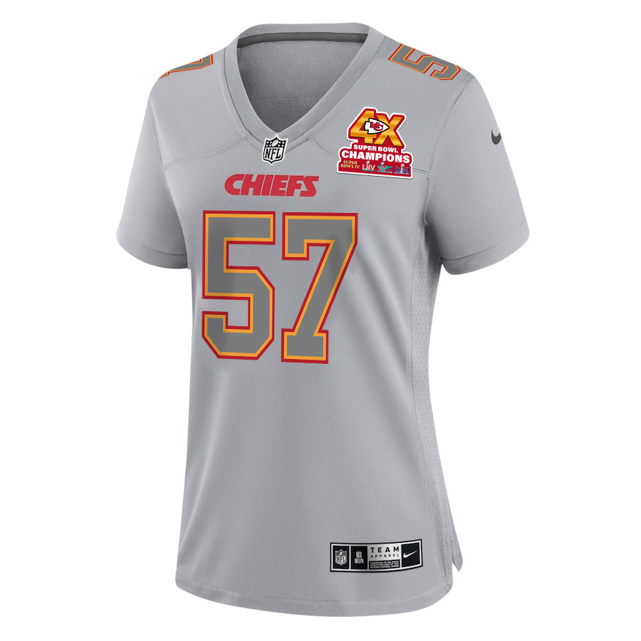 Truman Jones #57 Kansas City Chiefs Super Bowl LVIII Champions 4X Game Jersey – Women’s | Gray