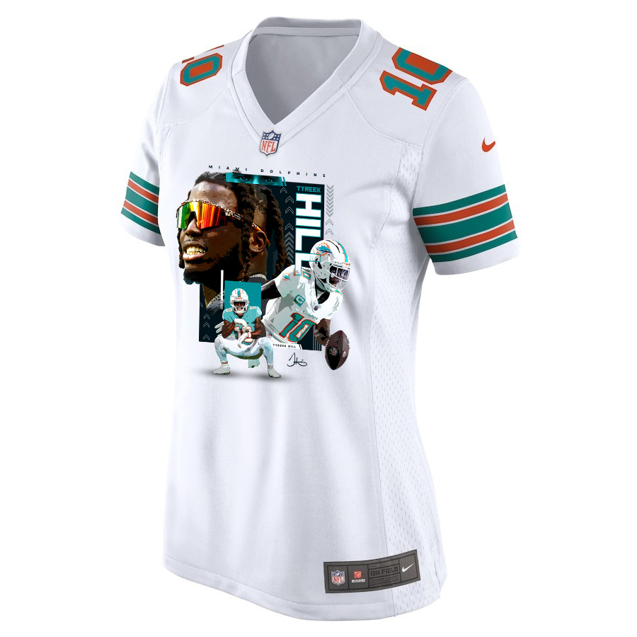 Custom Tyreek Hill 10 Miami Dolphins Run Cheetah Run Women Alternate Game Jersey – White JS4790 – Unique Gift from Froshix